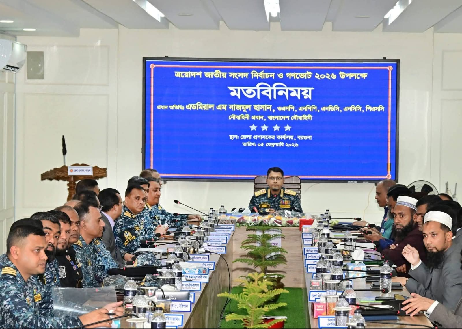 জাতীয় সংসদ নির্বাচন ও গণভোট–২০২৬ অবাধ, সুষ্ঠু, নিরপেক্ষ ও শান্তিপূর্ণভাবে আয়োজনের লক্ষ্যে বাংলাদেশ নৌবাহিনী ‘ইন এইড টু সিভিল পাওয়ার’-এর আওতায় বরগুনার দুইটি আসন ও ছয়টি উপজেলাসহ উপকূলীয় অঞ্চলের ২৫টি উপজেলার ১৬টি সংসদীয় আসনে দায়িত্ব পালন করছে।